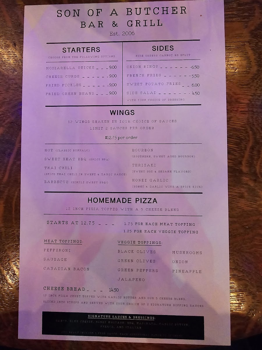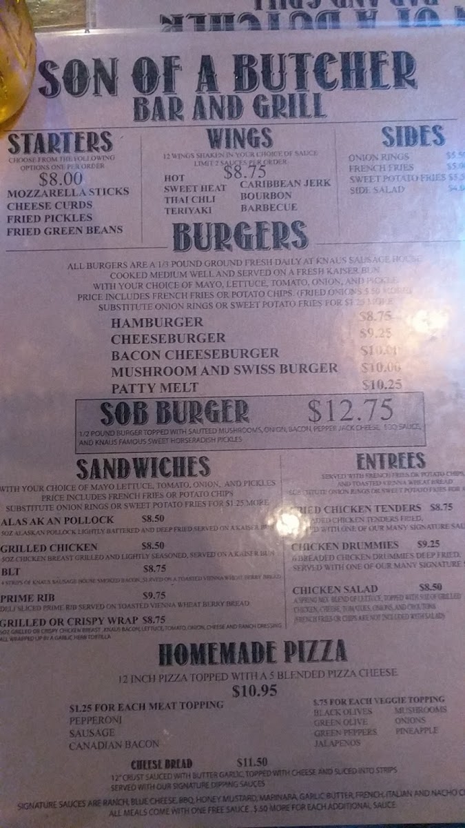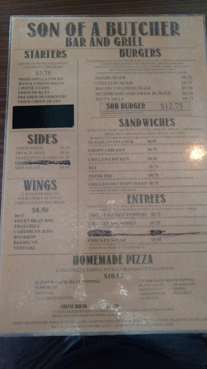 S.O.B's offers a straightforward and inviting menu that reflects the comfortable, small-town bar and grill atmosphere. The selection leans toward casual bites and hearty servings ideal for relaxed dinners or meeting up with friends after a long day.
